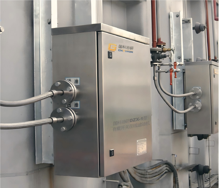 在線濾油機在循環(huán)過濾時能有效地除去油中的游離碳、水分、氧化物及雜質(zhì),確保了開關(guān)油的油質(zhì)和絕緣強度,增加了開關(guān)的切換次數(shù),延長檢修周期,減少停電次數(shù),保證電壓質(zhì)量,提高有載分接開關(guān)工作的安全性、可靠性。